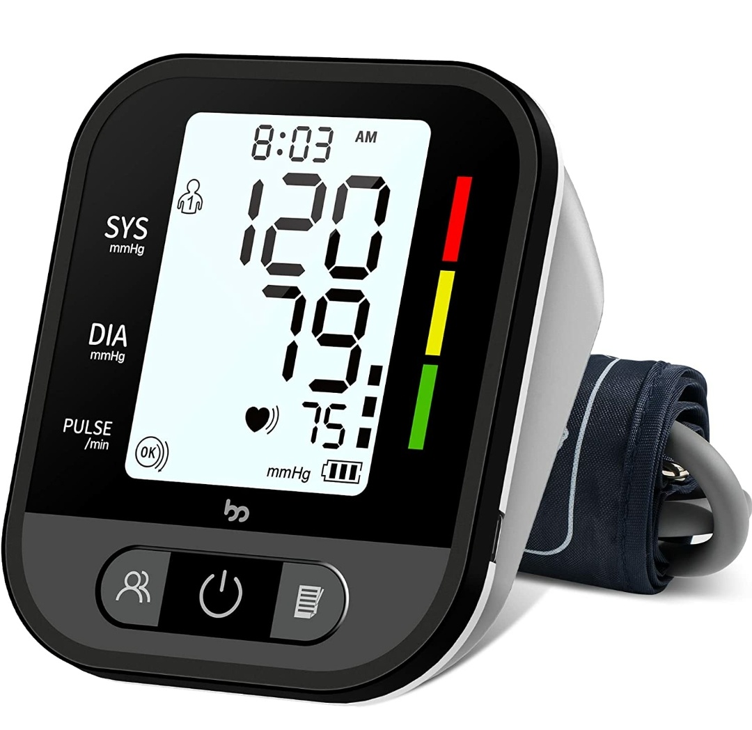 55% off on Blood pressure monitor device with arm cuff for $17.99. Clip 10% coupon and use promo 45MO5FBA.