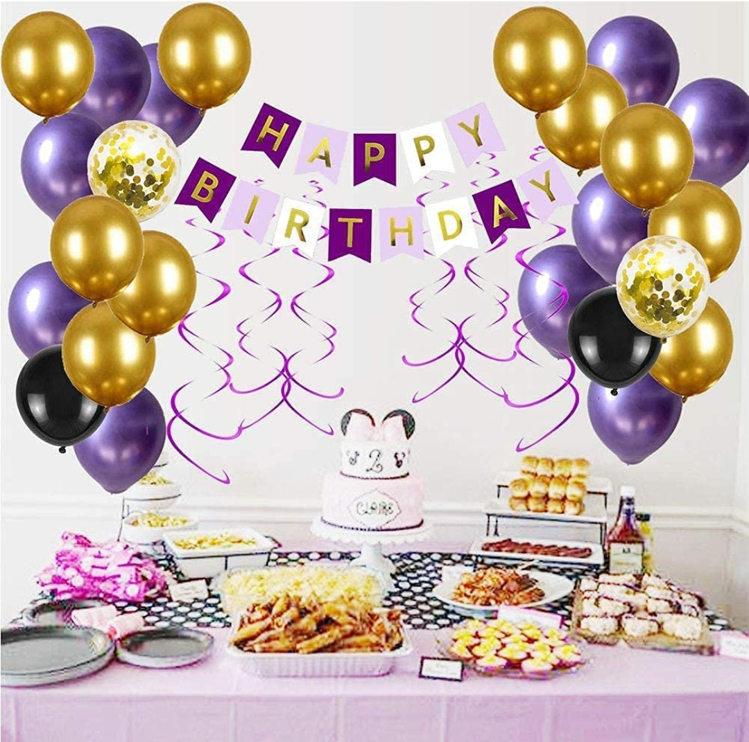 Get this Purple Gold Birthday Party decoration set for $5.99 with 50% off promo KWNHB74W